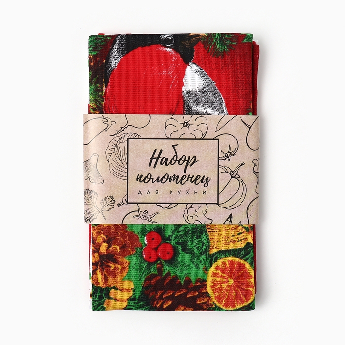 Набор кухонных полотенец Доляна «Зимние радости» 35х60см-2шт, 100% хлопок