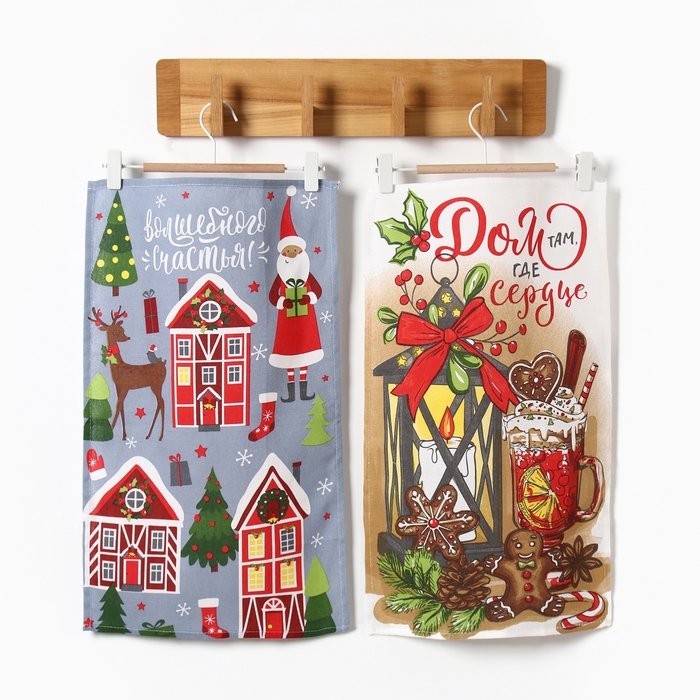 Набор кухонных полотенец Доляна «Дом там где сердце» 35х60см-2шт, 100% хл