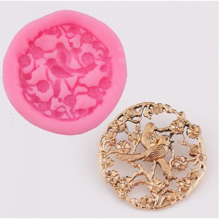 Молд силикон "Птички в цветочных ветвях" 6,5 см