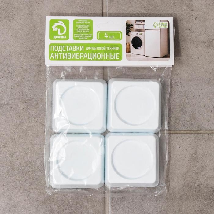 Антивибрационные подставки «Доляна», 4 шт, квадратные, цвет белый