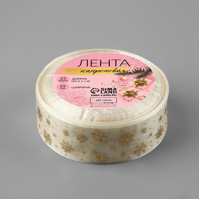 Новый год! Лента капроновая с тиснением «Снежинки», 25 мм × 23 ± 1 м, цвет белый/золотой №008