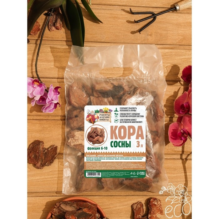 Кора сосны "Рецепты Дедушки Никиты" может использоваться как субстрат для выращивания растений в горшках, контейнерах или грунте, а также как мульча для укрытия почвы в саду или огороде. В обоих случаях она помогает сохранить оптимальные условия для роста растений, защищая корни от перегрева, переохлаждения и пересыхания. Кроме того, кора сосны предотвращает развитие сорняков, что уменьшает необходимость вручную пропалывать грядки.