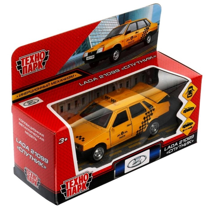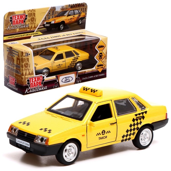 Машина металлическая ВАЗ-21099 «Спутник такси», 12 см, открываются двери и багажник, цвет жёлтый
