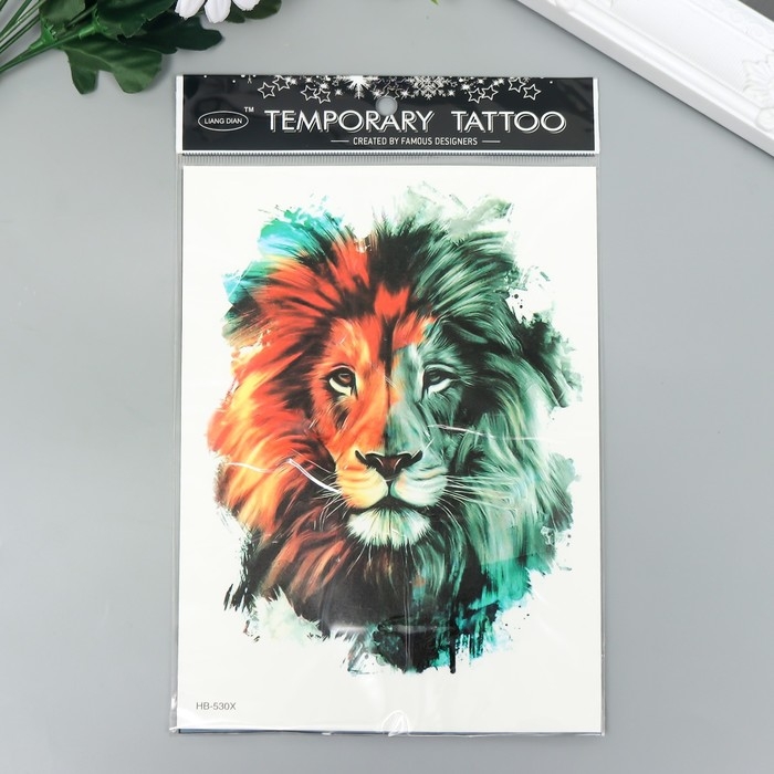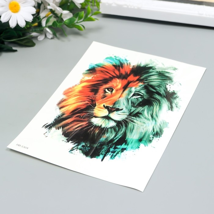 Татуировка на тело чёрная с цветом "Лев" 21х15 см