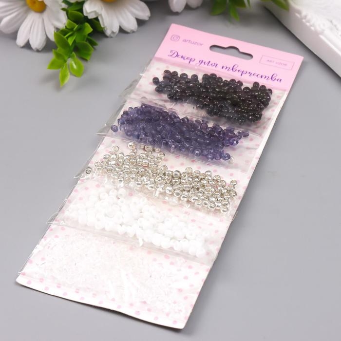 Бисер круглый "Чёрный, белый" 5 цветов х 10 грамм
