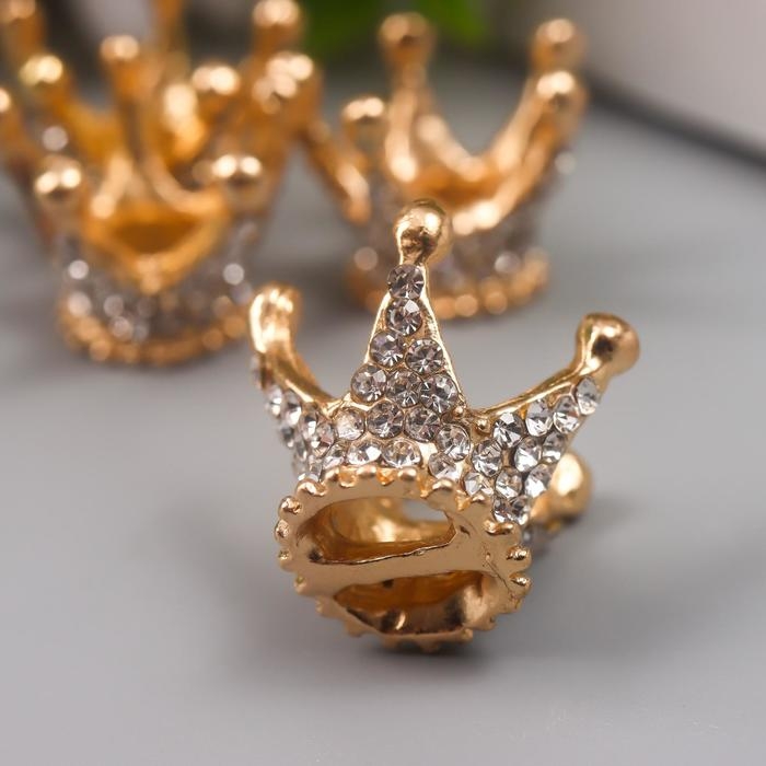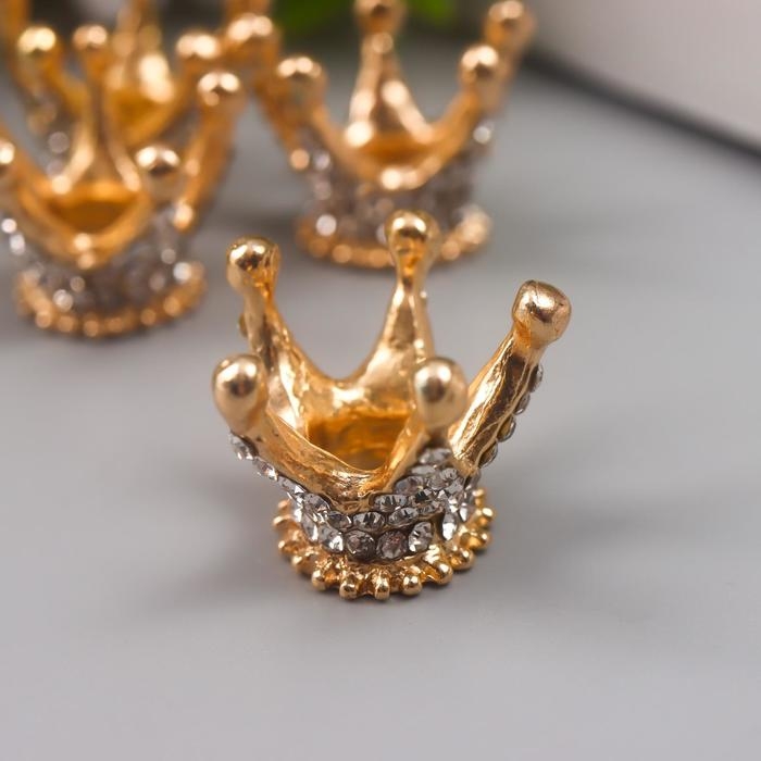 Декор для творчества металл "Корона в алмазах" золото, стразы 1,8х2,3х2,3 см