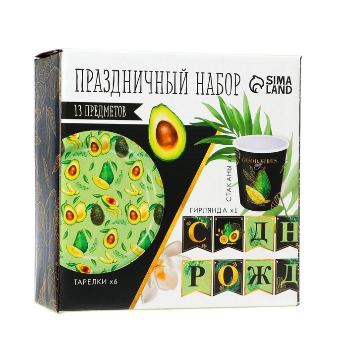 Набор бумажной посуды одноразовый Авокадо», 6 тарелок, 6 стаканов, 1 гирлянда
