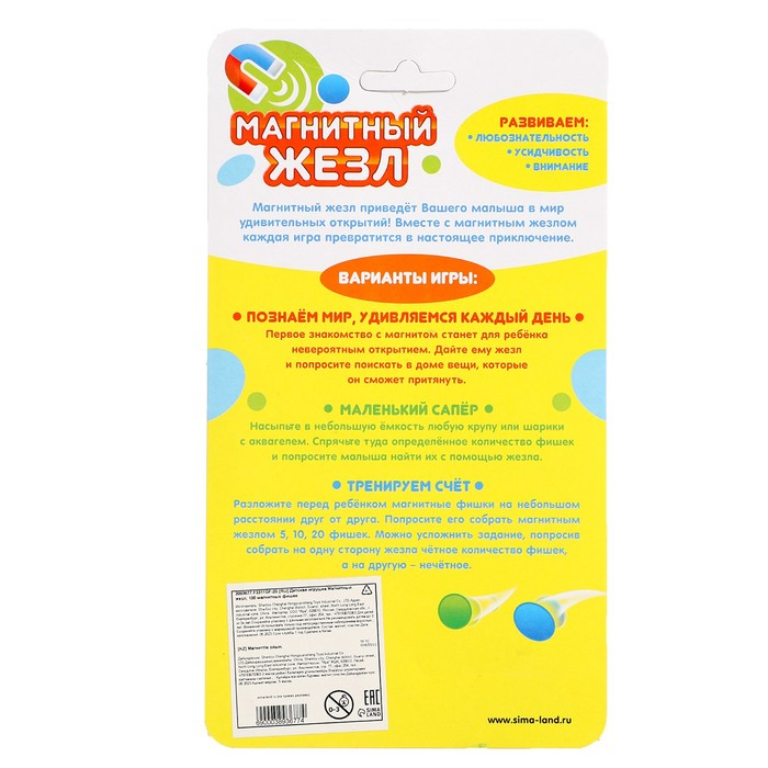 Магнитная игра «Магнитный жезл», 100 магнитных фишек, цвета МИКС, по методике Монтессори