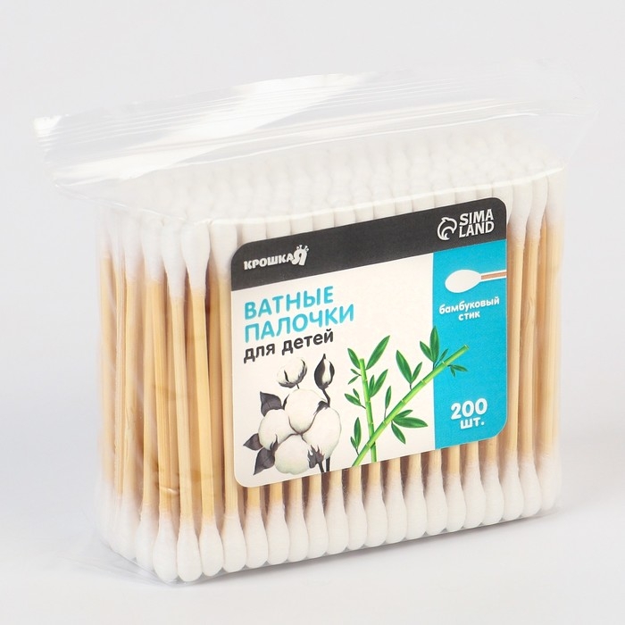 Ватные палочки для детей Крошка Я, коробка 200 шт., наконечник - классика, хлопок/бамбук