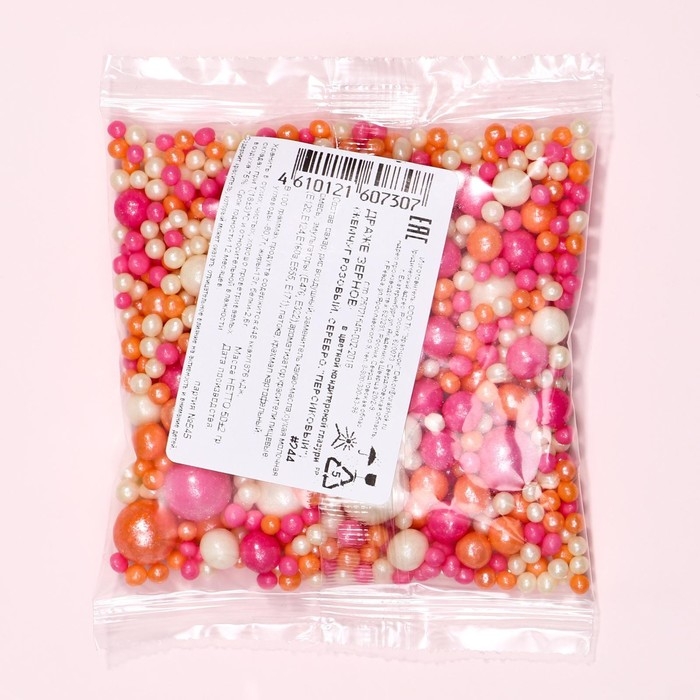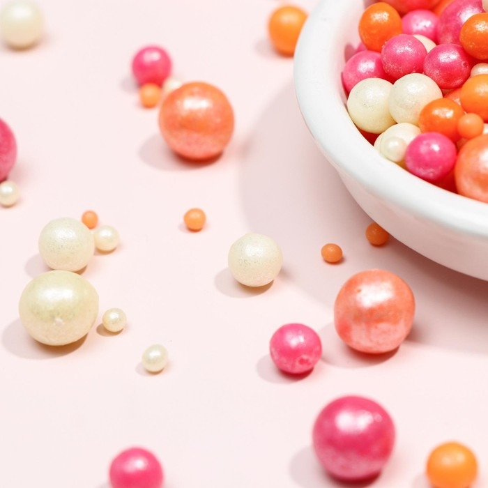 Посыпка кондитерская в цветной кондитерской глазури "Жемчуг": персиковая, розовая,серебряная", 50 г
