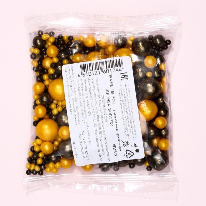 Посыпка кондитерская в цветной глазури "Жемчуг" золото, бронза, 50 г