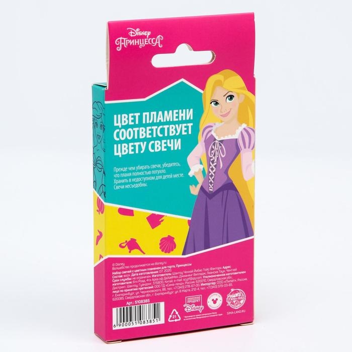 Набор свечей в торт 6 штук, с цветным пламенем, Принцессы