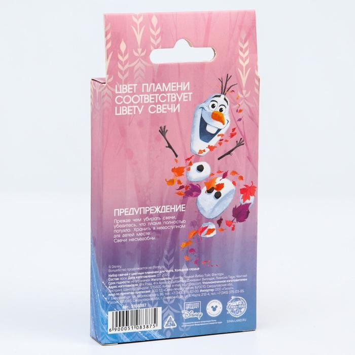 Набор свечей в торт 6 штук, с цветным пламенем, Холодное сердце