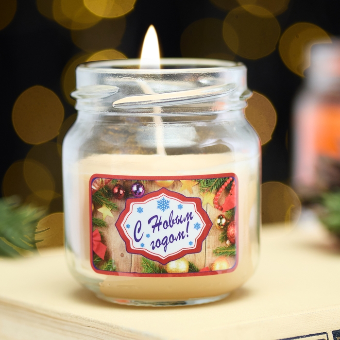Новогодняя свеча в стакане «Новый год: С Новым годом!», аромат шоколад