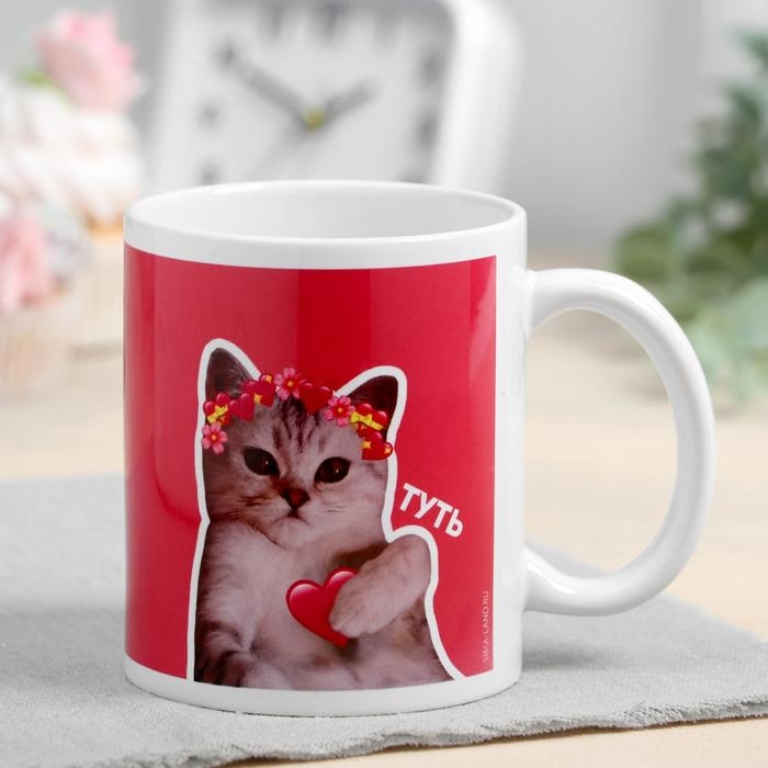 Кружка сублимация "Оля" кот, сердечко, 320 мл, с нанесением