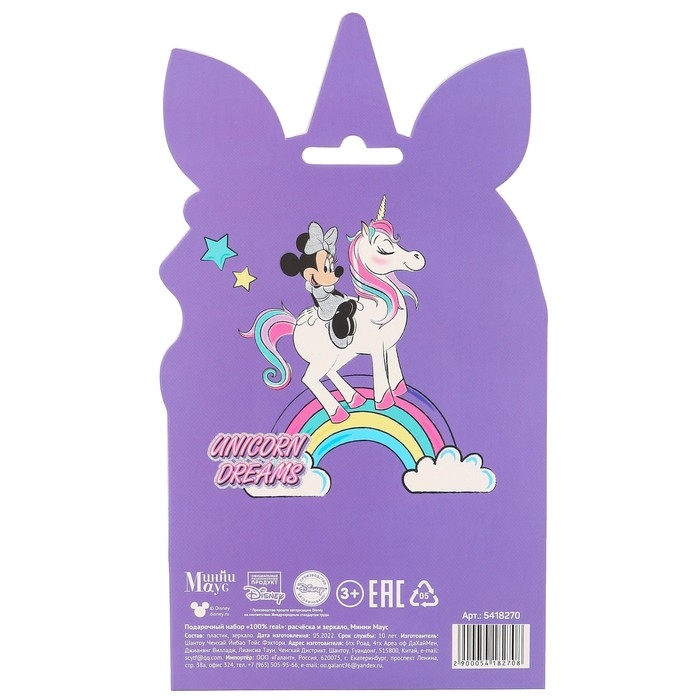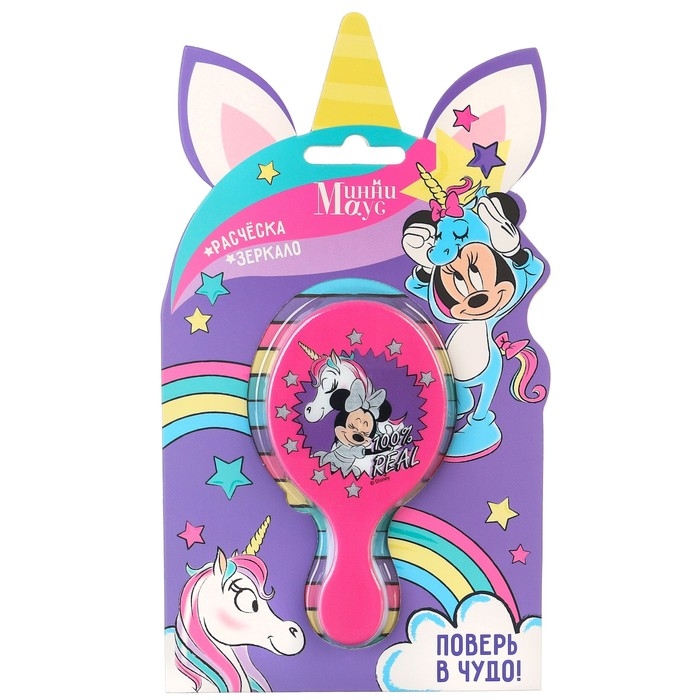 Подарочный набор: расческа и зеркало "Единорог", Минни Маус