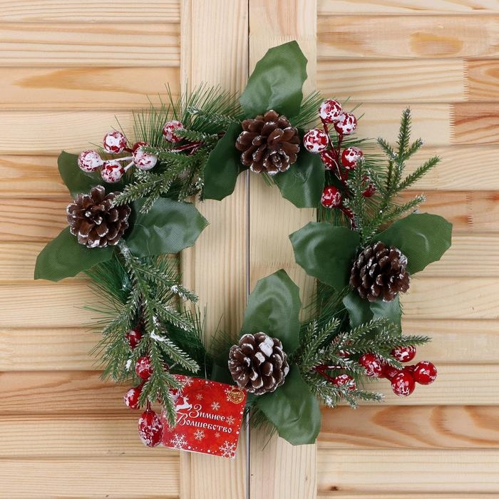 Венок новогодний d-18 см "Глория" шишки и ягодки