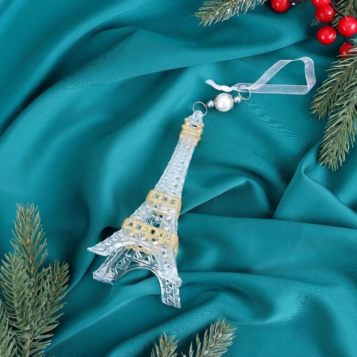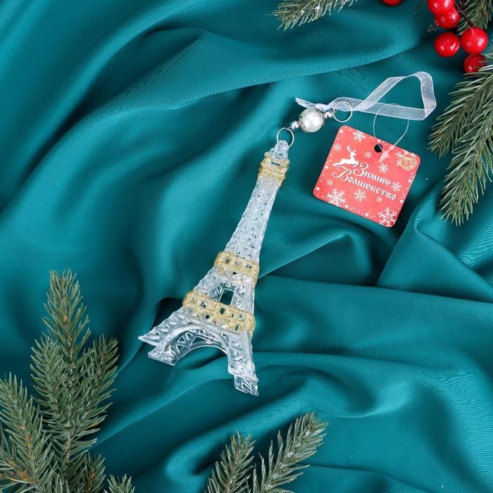 Украшение ёлочное "Эйфелева башня блеск" 6,5х14,5 см, прозрачно-золотой