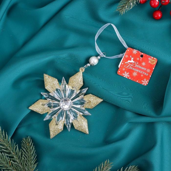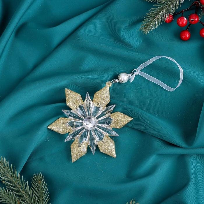 Украшение ёлочное "Снежинка лучистая сияние блеск" 12,5х 11,5 см, прозрачно-золотой