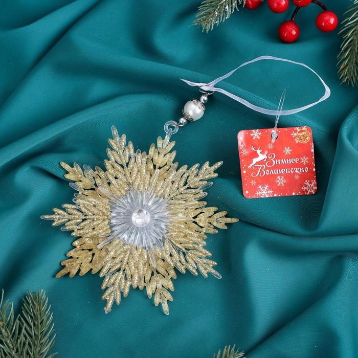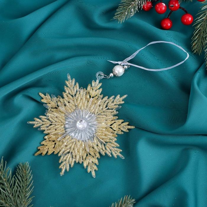 Украшение ёлочное "Снежинка звёздная сияние блеск" 13х13,5 см, золото