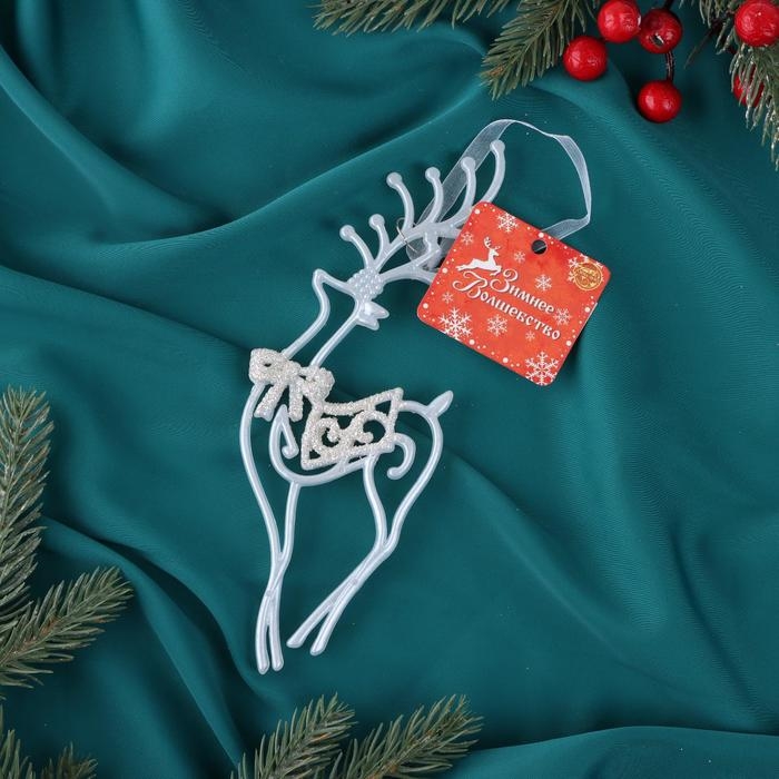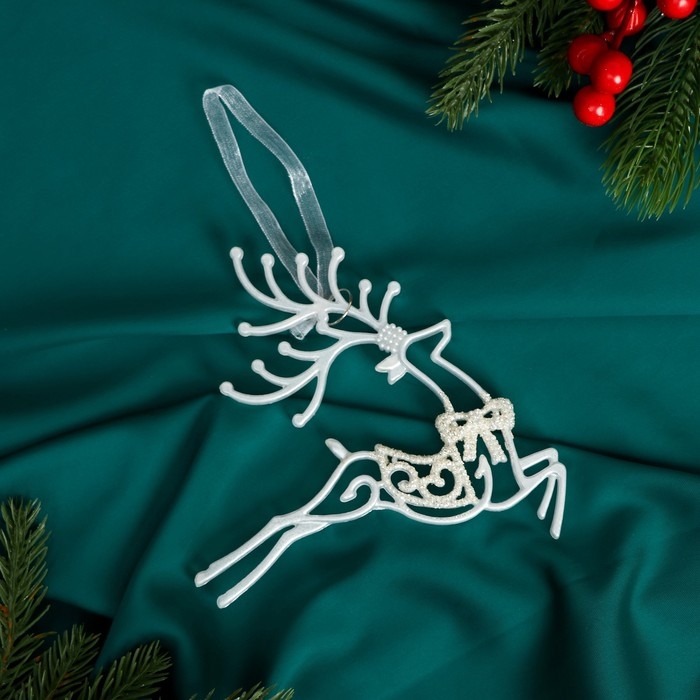 Украшение ёлочное "Бегущий олень блеск" 10х19 см, микс, белый