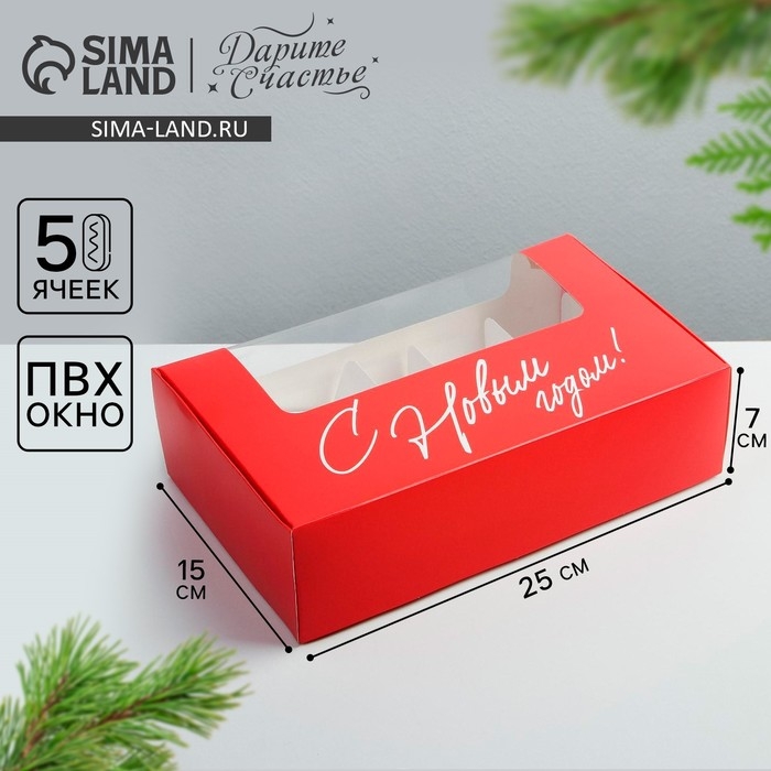 Коробка для эклеров с вкладышами - 5 шт «С Новым Годом!», 25,2 х 15 х 7 см, Новый год