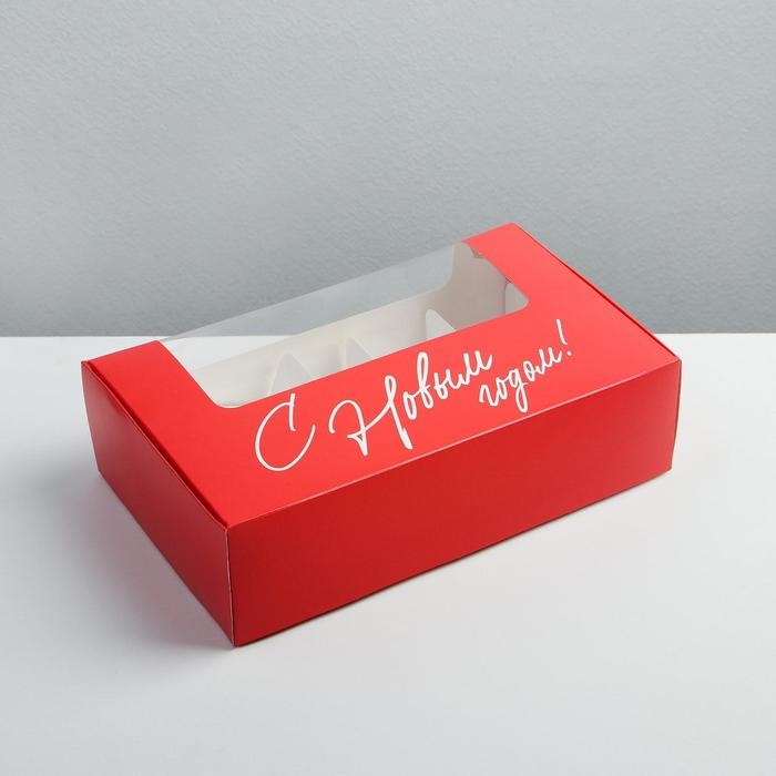 Коробка для эклеров с вкладышами «С новым годом!», 25,2 х 15 х 7 см, Новый год
