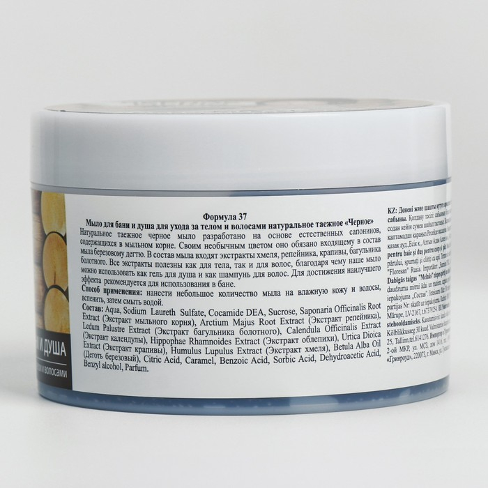 Мыло для бани и душа, для ухода за телом и волосами натуральное таежное Черное 450 мл