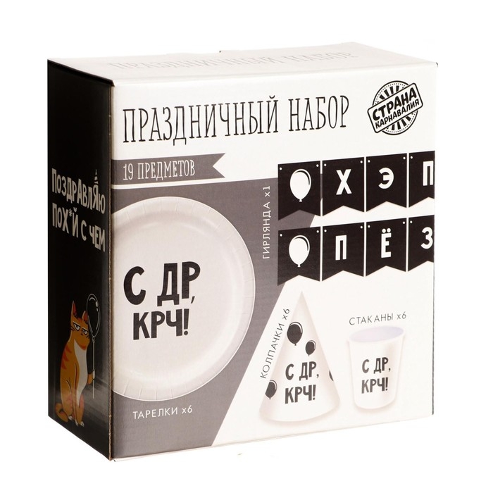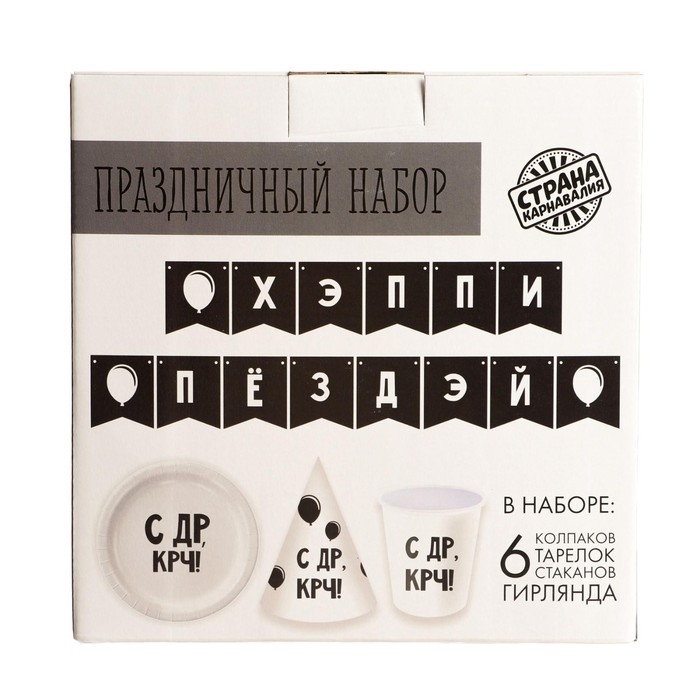 Набор бумажной посуды одноразовый Happy Birthday, 6 тарелок , 1 гирлянда , 6 стаканов, 6 колпаков