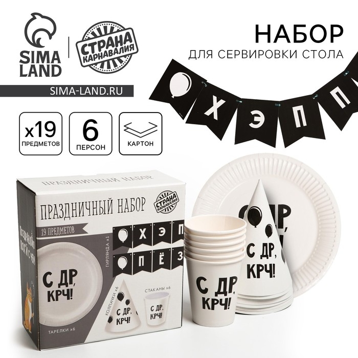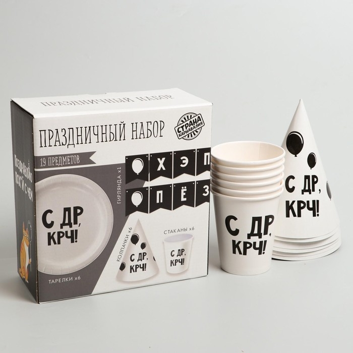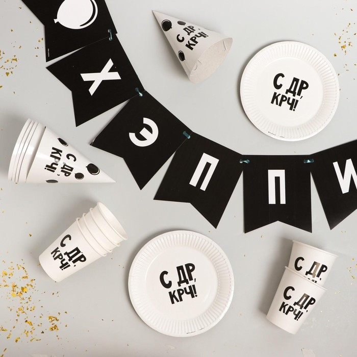 Набор бумажной посуды одноразовый С ДР», 6 тарелок, 6 стаканов, 6 колпаков, 1 гирлянда