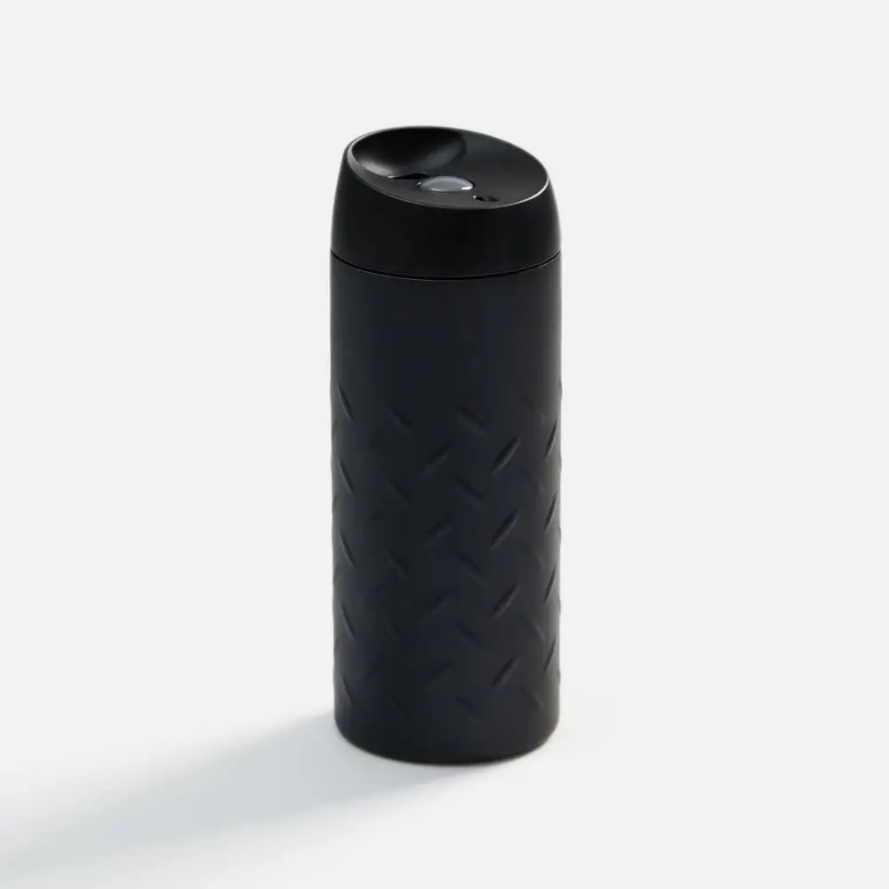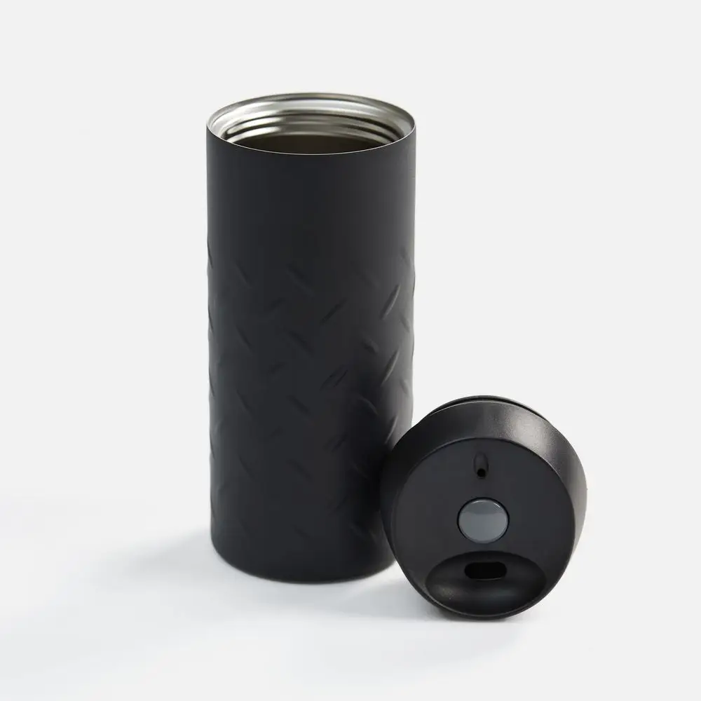 Двухслойная вакуумная конструкция из нержавеющей стали. Герметичная завинчивающаяся крышка с нажимным клапаном для питья. Стакан подходит для большинства автомобильных подстаканников.