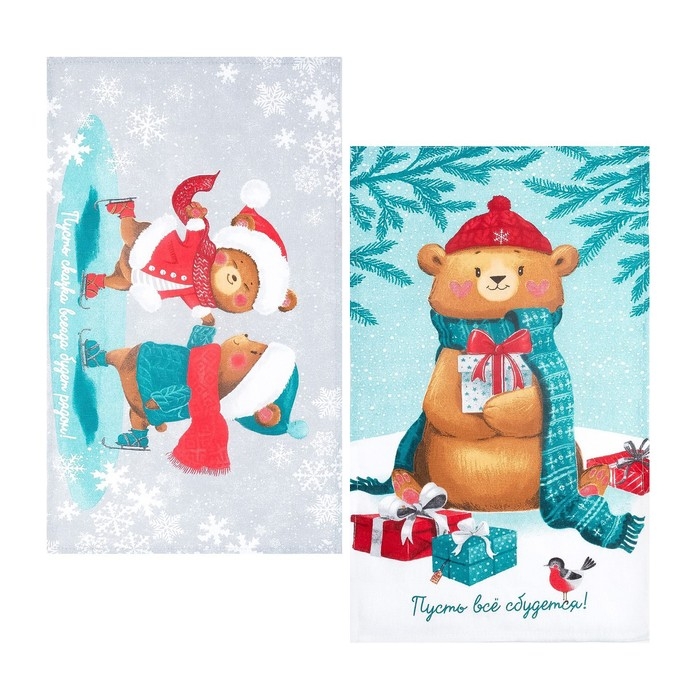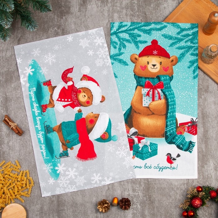 Набор кухонных полотенец «Новогодняя Сказка праздник в городе» 35х60см-2шт, 100% хлопок