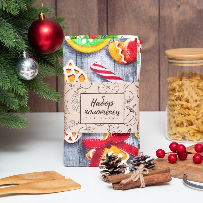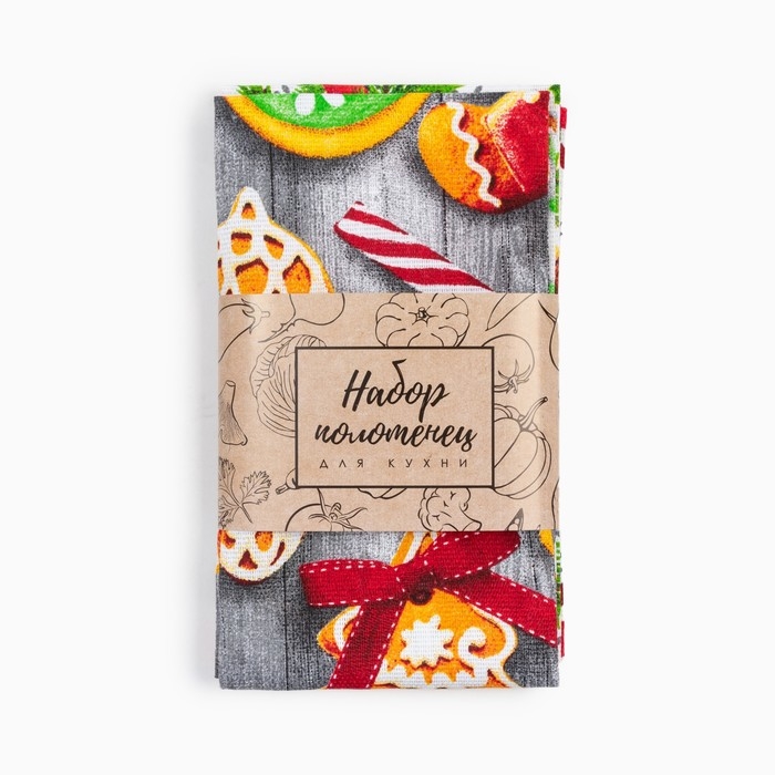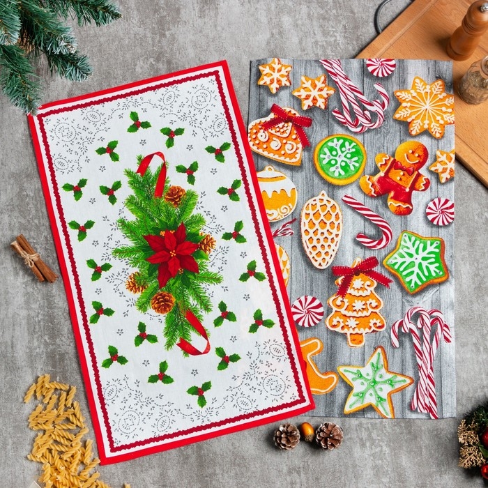 Набор кухонных полотенец Доляна «Новогоднее печенье » 35х60см-2шт, 100% хлопок