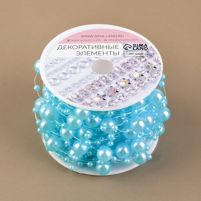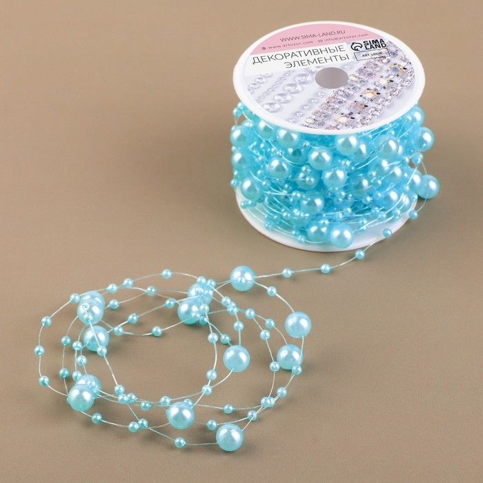Жемчуг на леске, 3/8 мм, 9 ± 0,5 м, цвет голубой