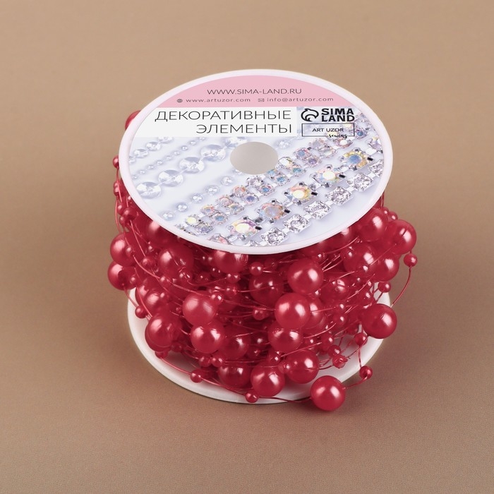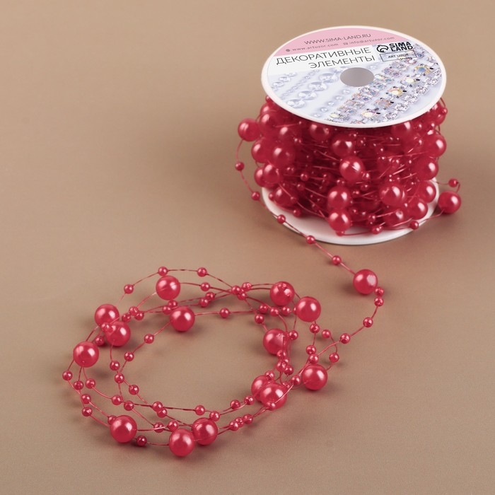 Жемчуг на леске, 3/8 мм, 9 ± 0,5 м, цвет красный