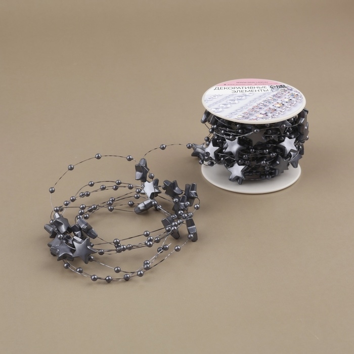 Бусы на леске, «Звёзды», 3/14 мм, 9 ± 0,5 м, цвет серый