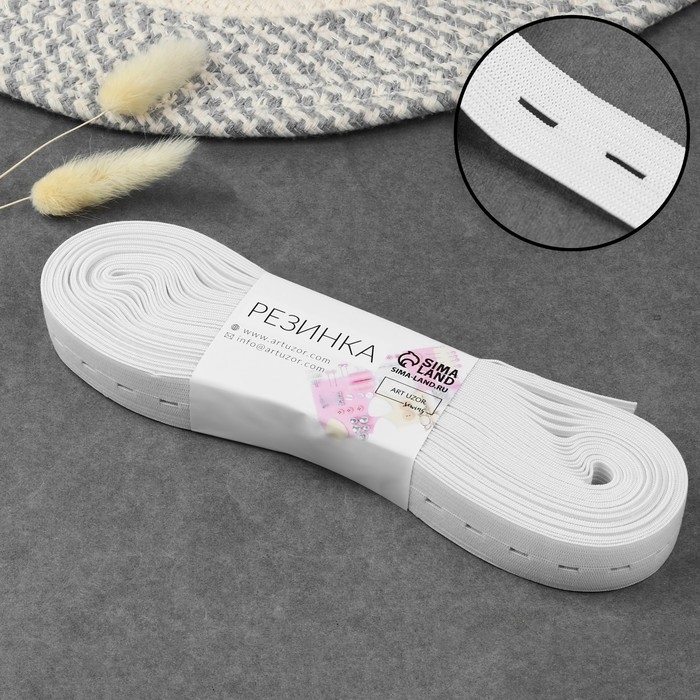 Резинка вязаная, перфорированная, 20 мм, 10 ± 0,5 м, цвет белый