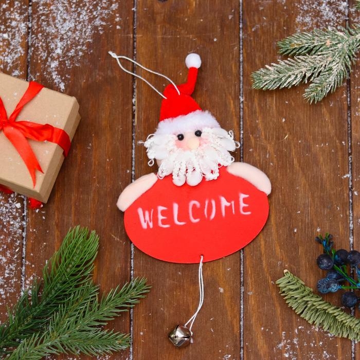 Мягкая подвеска "Дед Мороз с бубенцом" 10х15 см, красный