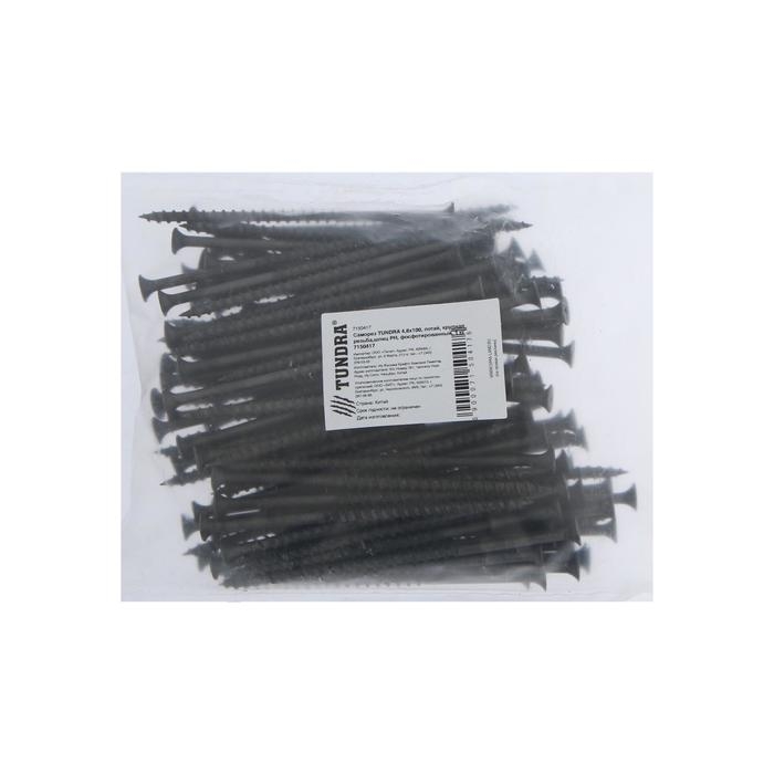 Саморез 4.8х102 мм ТУНДРА PREMIUM, потай, крупная резьба, шлиц PH, фосфатированный, 1 кг