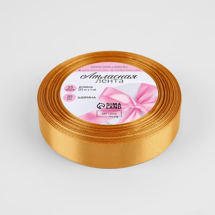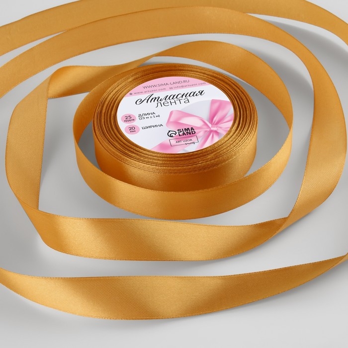 Лента атласная, 20 мм × 23 ± 1 м, цвет охра №114