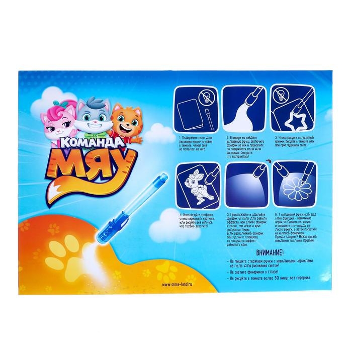 Набор для рисования светом «Команда Мяу», ручка с фонариком и невидимыми чернилами