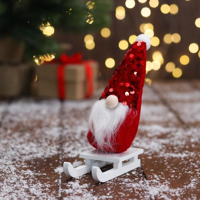 Мягкая игрушка "Дед Мороз на санках" пайетки, 5х13 см, красный