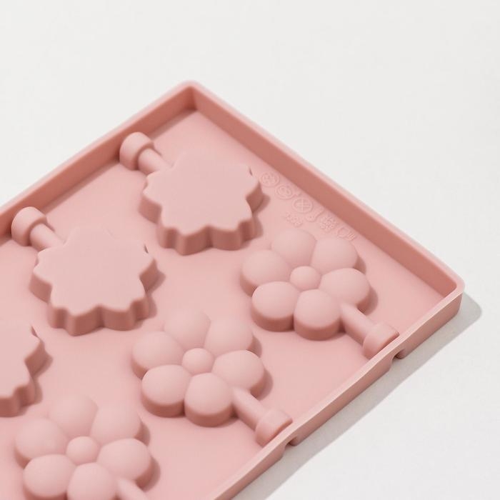 Форма для леденцов «Зверята», силикон, 14×14×1,4 см, 8 ячеек, с палочками, цвет МИКС