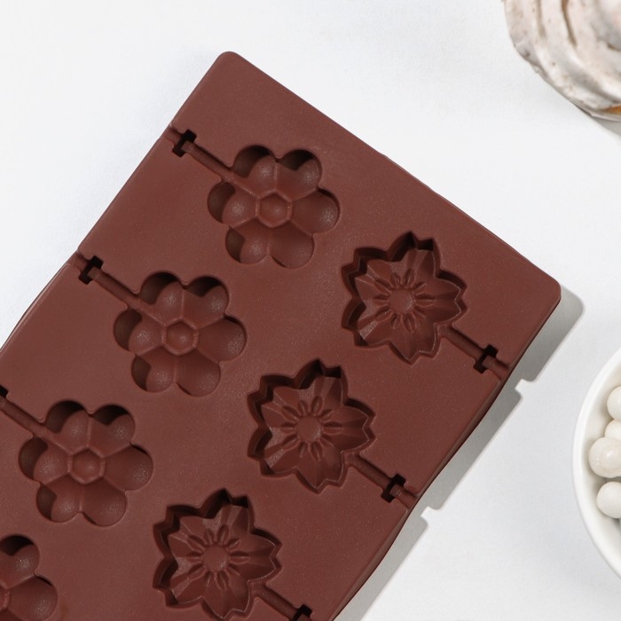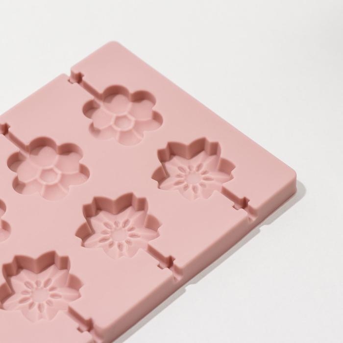 Форма для леденцов Доляна «Клумба», силикон, 25×10,5×1 см, 12 ячеек (3,2×3 см), с палочками, цвет МИКС