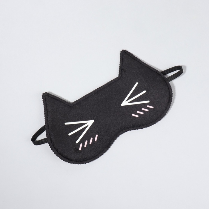 Маска для сна «Котяо», 19,5 × 12 см, резинка одинарная, цвет чёрный