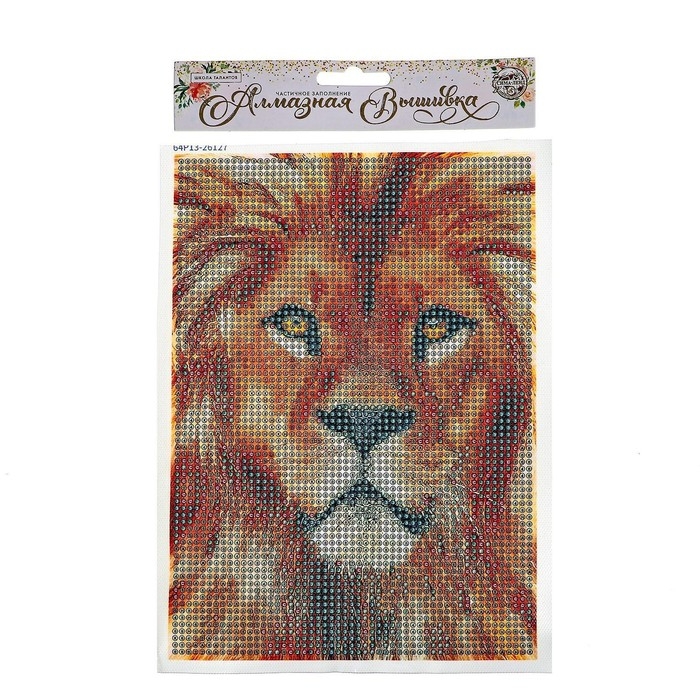 Алмазная мозаика с полным заполнением на холсте «Лев», 15 х 21 см