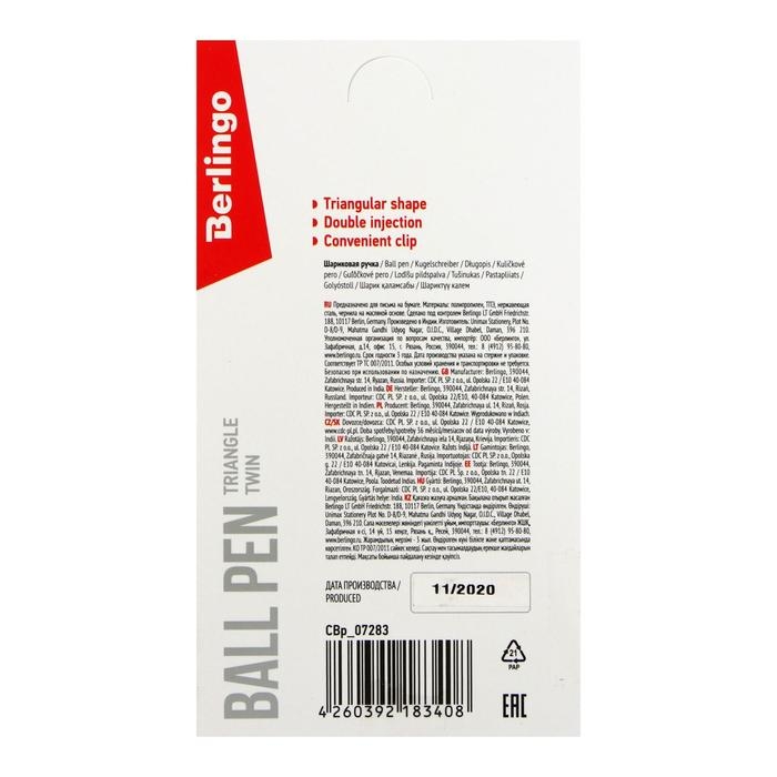 Шариковая ручка Berlingo Triangle Twin — это не просто инструмент для письма, а залог вашего комфорта и продуктивности в любой ситуации. Откройте для себя качество, которое действительно имеет значение, и позвольте вашему письму сиять с новой стороны!