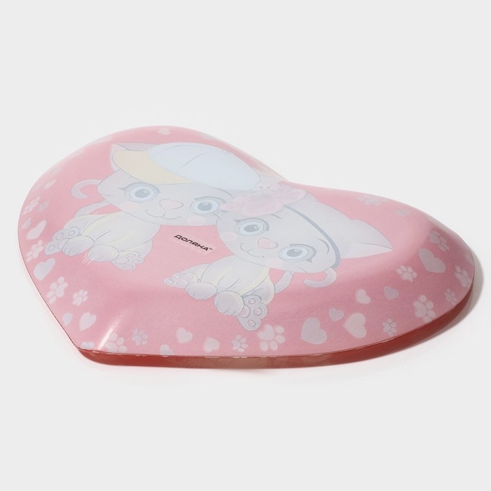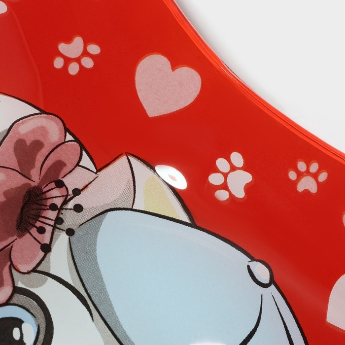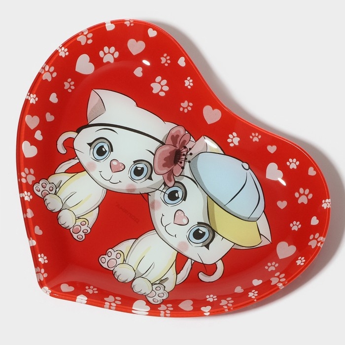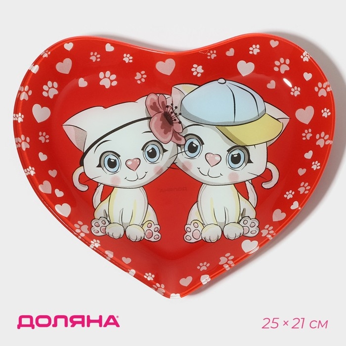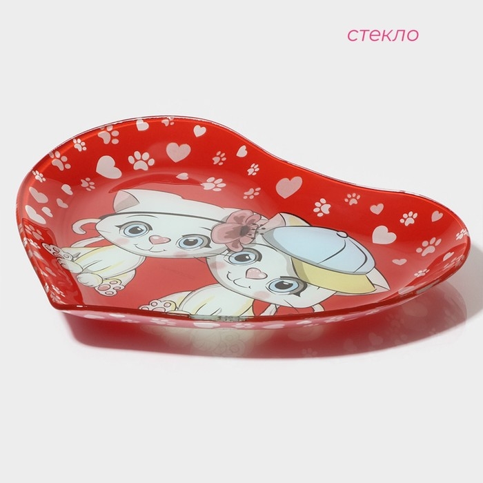 Блюдо стеклянное сервировочное Доляна «Сердце. Котики», 25×21×2,3 см, цвет красный