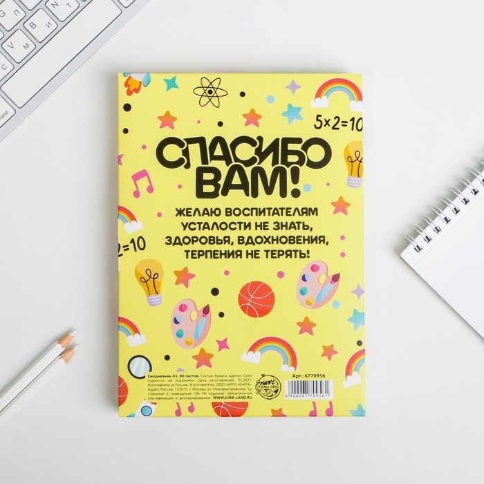 Ежедневник в подарочной коробке «Любимому воспитателю» формат А5, 80 листов, твердая обложка