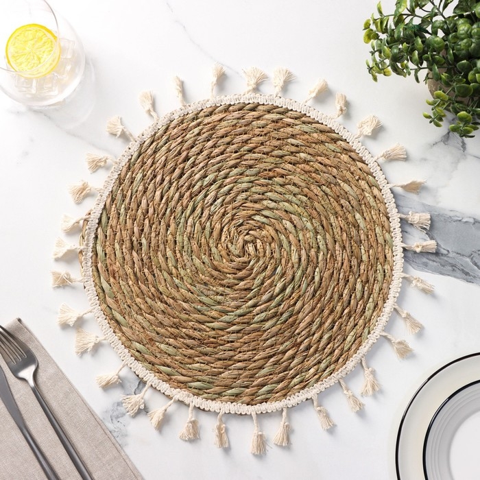 Салфетка сервировочная на стол «Тэм», d=38 см, цвет тёмно-серый